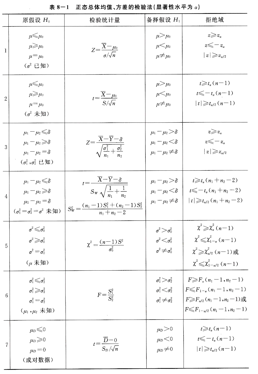 基本思想:对总体的参数作出假设,然后通过抽样进行统计分析,从而判断假设是否成立。弃真错误的概率为 α 。